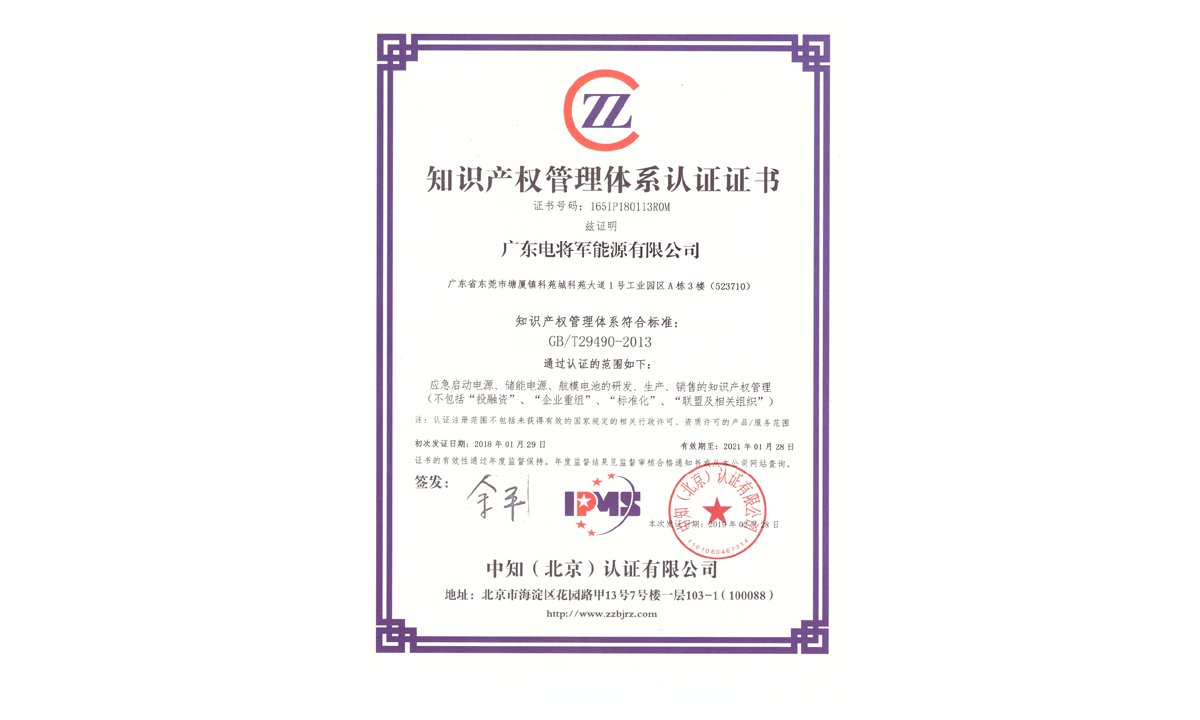 知識產權管理體系認證證書