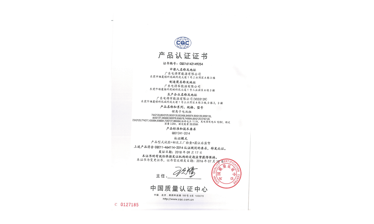 產品CQC認證證書